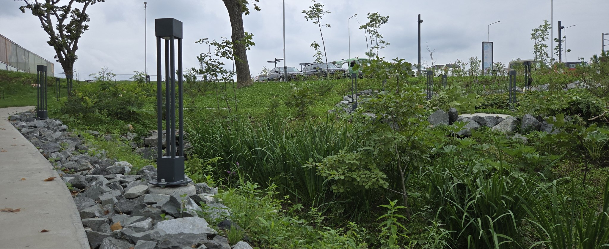 Концепция эко-пространства и сохранения долины папоротников была главной для всего оврага. овраг делится на 4 части, так как вокруг него строиться 4 дома. К каждому дому есть часть оврага, которая благоустраивается по очереди. Этот проект является первой частью оврага для Первого жилого дома.